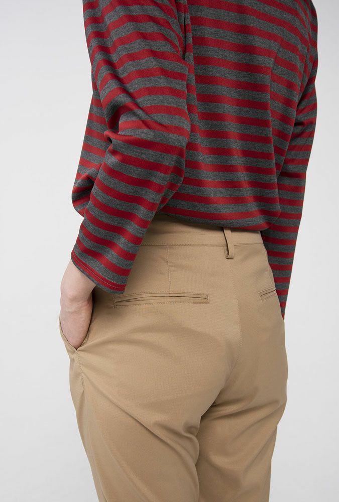 アウトドア、スポーツウエアでよく見かけるリップストップ生地をユニフォーム用途に合わせて改良しました。撥水、ストレッチ機能あり、軽量でもあるので他のパンツとは全く違う軽くアクティブな着用感を得る事ができます。ハードワークもOKです。カッティングはスーツに合わせるパンツとして作成されていますので、同生地のジャケット(DD2767)と合わせてスーツとしての着用も可能です。ホテル、レストラン、アミューズメントなどでスーツスタイルとして着用する、もしくはジャケット無しのスタイルの中に1つのアクティブなパンツとして着用するなどオススメします。 |