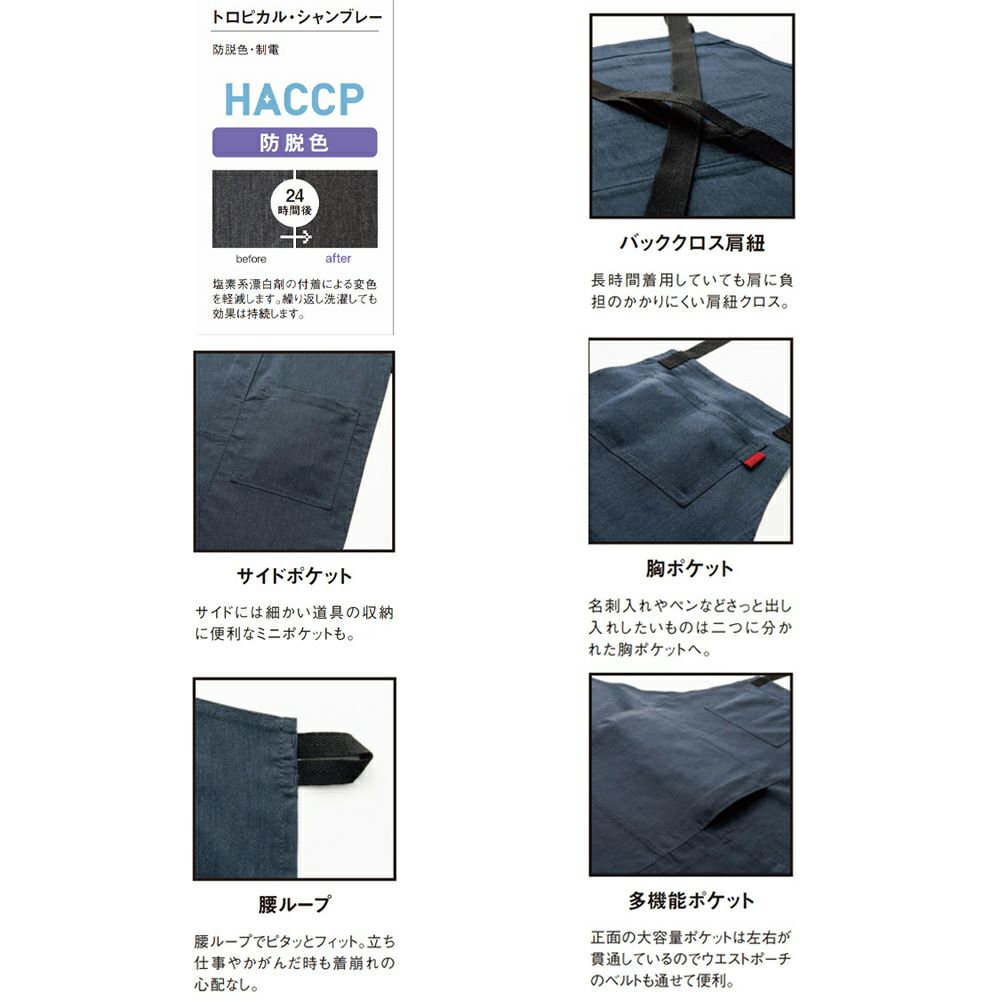 サイズフリー 腰下エプロン(ロング) [防脱色] [SRV-AN4100]