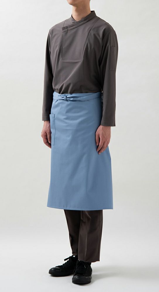 抗菌性、防臭性、撥水性、撥油性を備えた高機能なミドル丈エプロン。