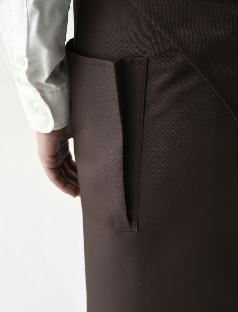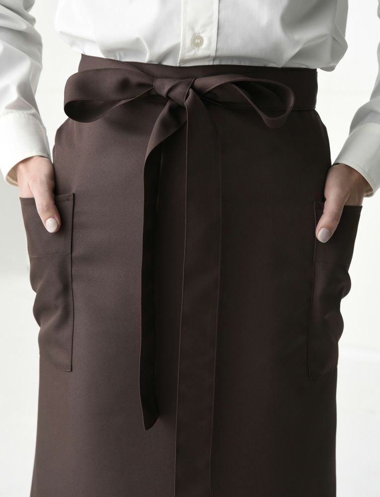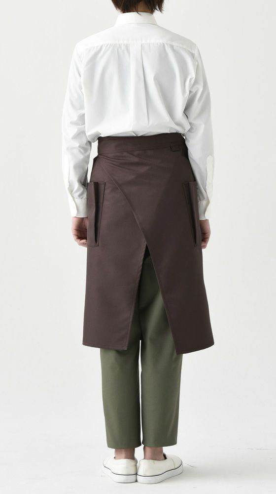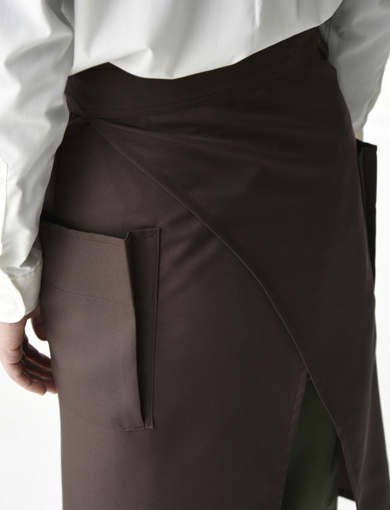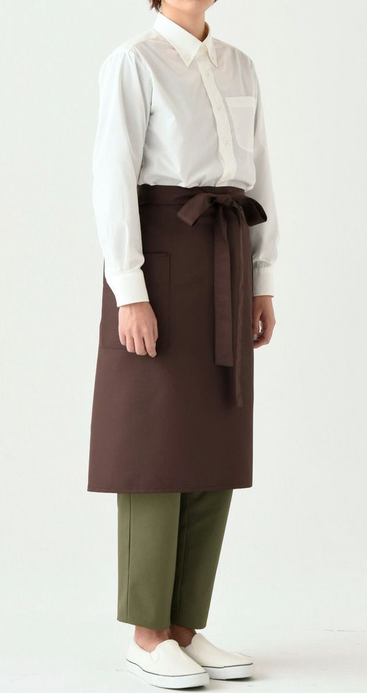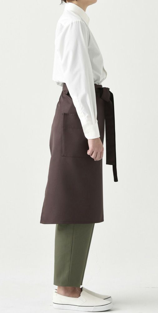 制電素材の腰下ミドル丈エプロンは、和・洋・中、店舗を選ばず、幅広くお使いいただけます。