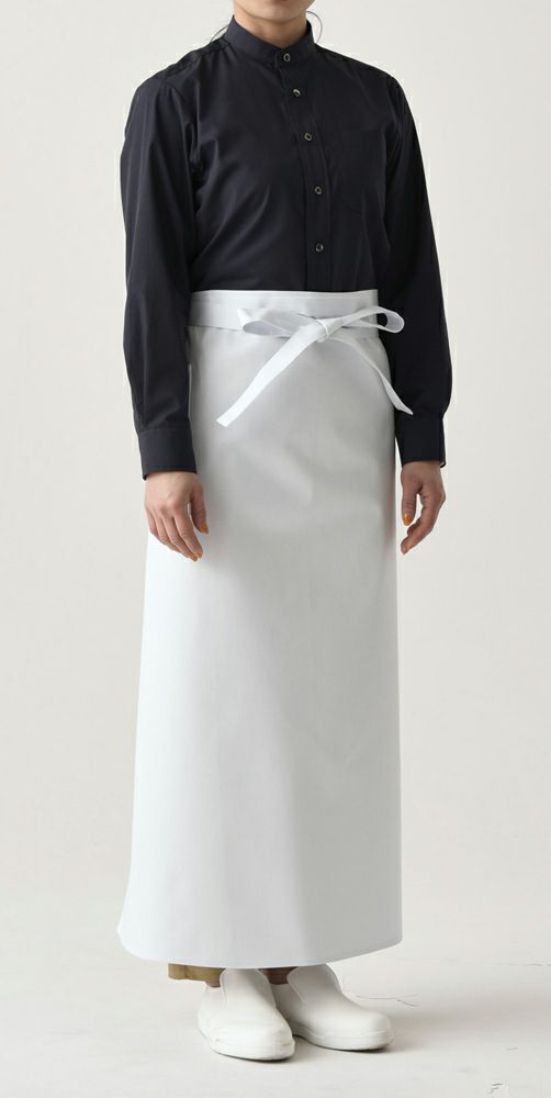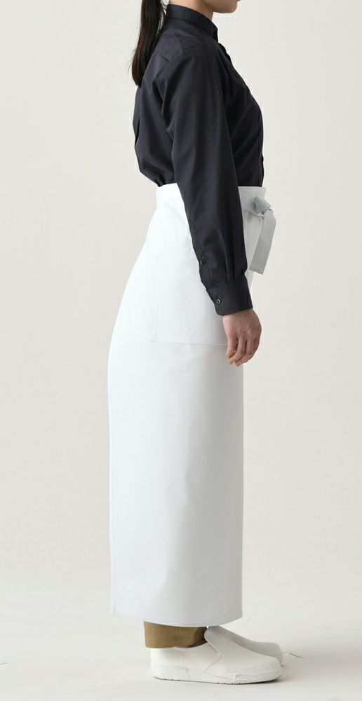 カツラギ生地、綿100%の白いソムリエエプロン。デザインは定番で、丈もしっかりと長いです。太い糸でのカツラギ生地ですので身に着けるとそれなりの重厚感があります。洗って時間が経つと身体に馴染んでいきます。 |