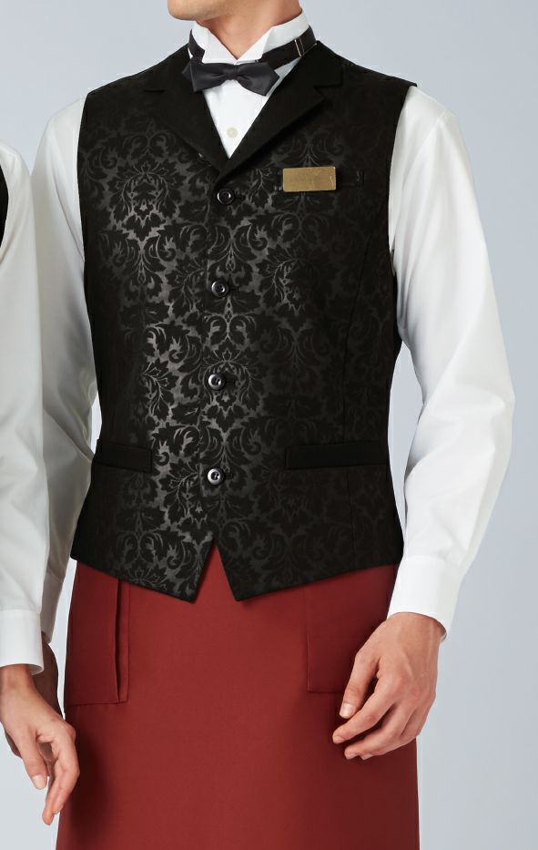 特徴 植物がモチーフのダマスク柄をエンボス加工で上品に仕立てました。エレガントで格調高い雰囲気のベストです。