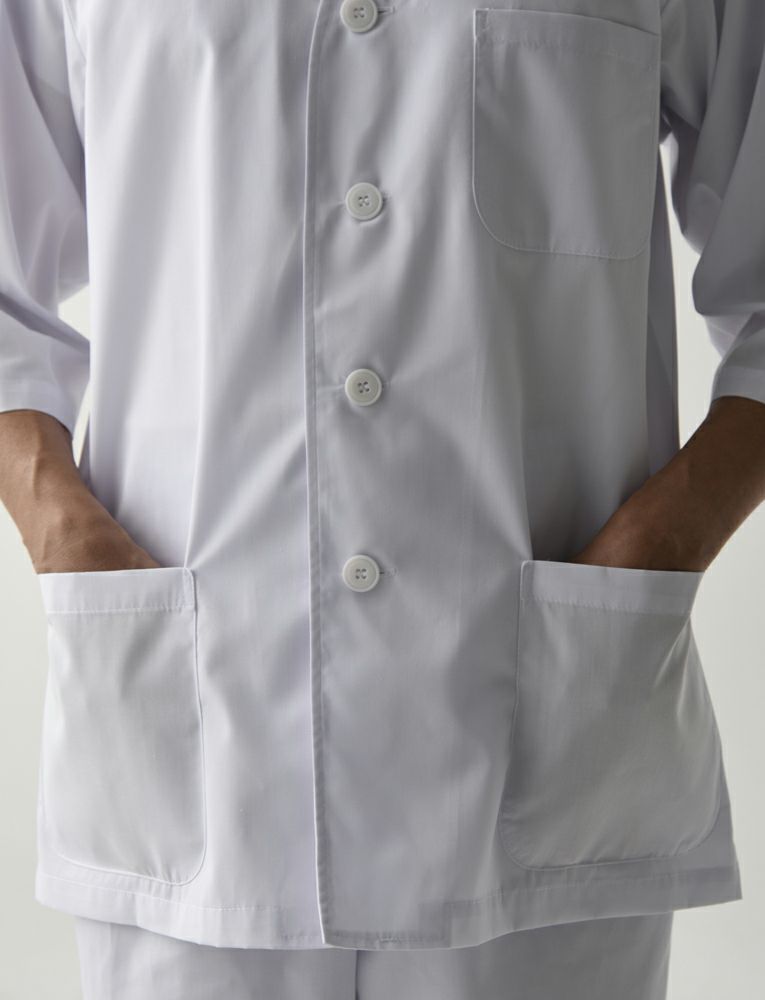 厨房・コックさんのユニフォームとして似合うコック帽やコックコート、厨房白衣、白エプロン、コックシューズといった厨房専用の制服が勢揃い。店名やロゴ・個人名の名入れ刺繍が可能。
