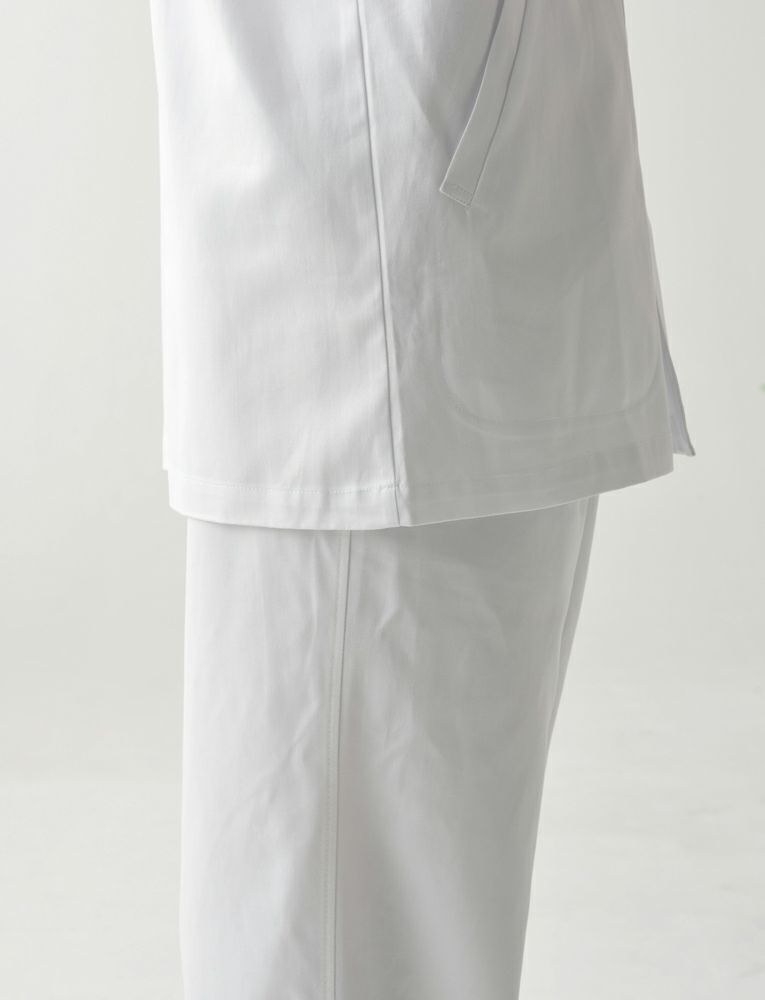 厚手生地、綿100%カツラギのコート。袖口はゴム仕様ですので袖を好きな位置に上げて着用することができます。またそのゴムはオリジナルで耐熱性があります。洗濯性に優れ、通常のものより永く使えます。定番的なコートですので多くのシーンで使用できます。腰に左右ポケットあり、左胸内側にもポケットあり。男性用。 |