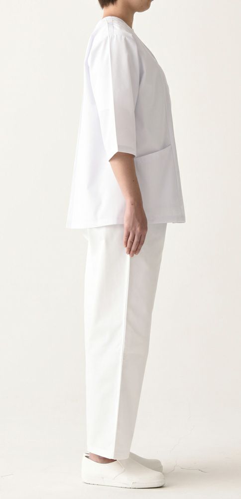 コートとしては薄手の生地、綿ポリエステル混率、平織り組織のコートです。抗菌防臭機能あり。定番的なコート生地と比べて薄手なので着用感が軽いです。背中に大きなボックスプリーツがあるのでたっぷりとした着心地感が得られます。5分袖。腰に左右ポケットあり。女性用。 |