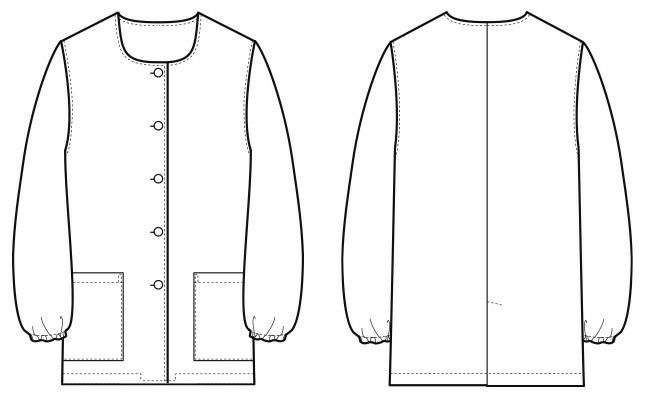 コートとしては薄手の生地、綿ポリエステル混率、平織り組織のコートです。抗菌防臭機能あり。定番的なコート生地と比べて薄手なので着用感が軽いです。袖口にはゴムが入っていますので、好きな位置まで上げて作業しやすい袖丈にすることが出来ます。またそのゴムはオリジナルで耐熱性があります。洗濯性に優れ、通常のものより永く使えます。長袖。腰に左右ポケットあり。後ろベントあり。女性用。 |