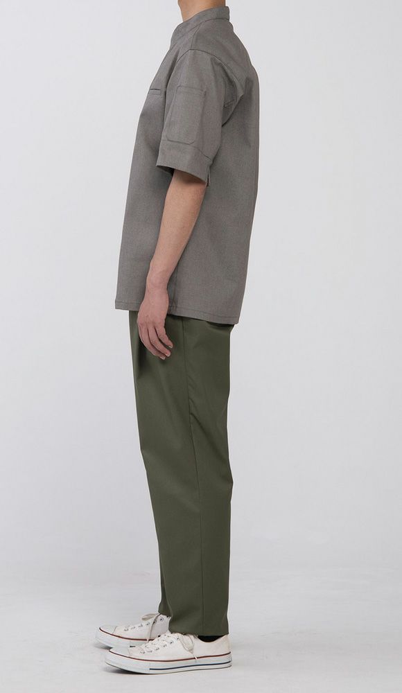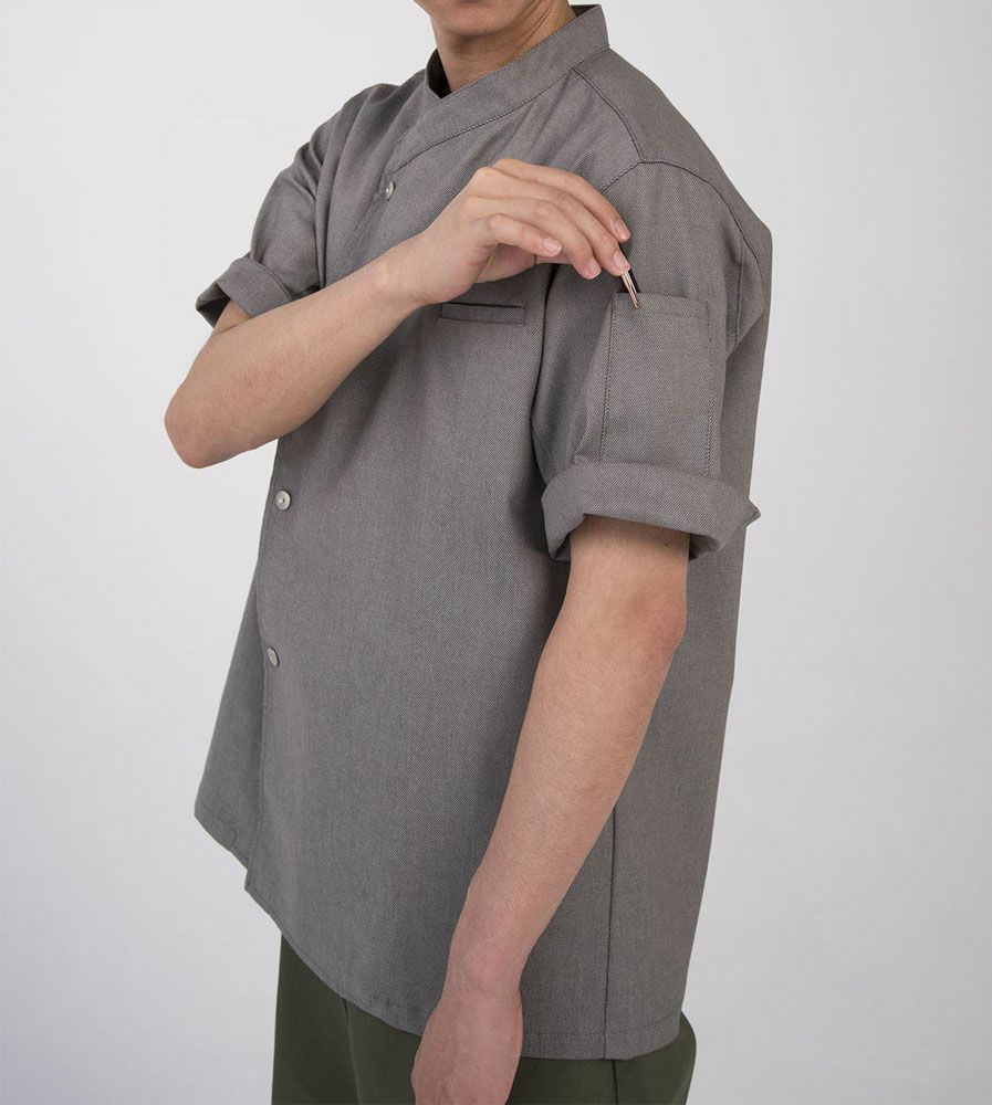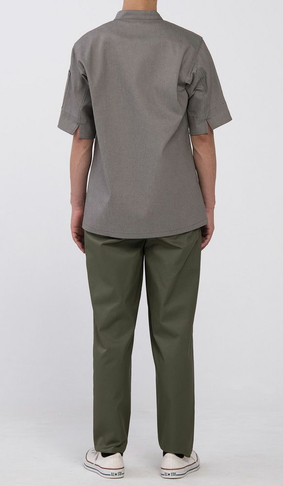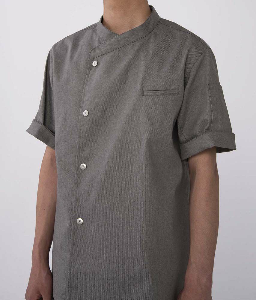 経年劣化しない麻調デニム生地が特徴です。綿デニムのような色落ちがほぼ無いのでいつまでもきれいな色のままを保ちます。麻は入っていませんが麻のようなドライタッチ感があり、そのタッチ感が肌離れよくすることで涼しい着心地を得られます。適度なハリコシは着用時に高級感を醸し出し、生地の厚さは耐久性を上げ、永く着用できるアイテムになっています。ワークディティールがカルチャーとルーツを感じさせます。シェフからサービススタッフ、物販接客までコーディネートにより幅広いシーンを表現することが出来るアイテムです。ボタンは流行りのドットボタン仕様ですのでアクセサリー感覚な部分もあり着脱も楽です。袖口は折り上げることをオススメします。色々な新しいコンセプトが生まれてくる中、色展開もそういったシーンにマッチする3色を用意しています。 |