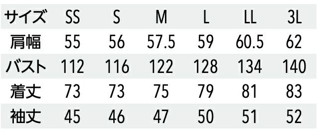 機能 フロントスナップあき、左胸ポケット、袖口スリット、袖留め用タブロールアップスリーブ、両脇スリット、男女兼用