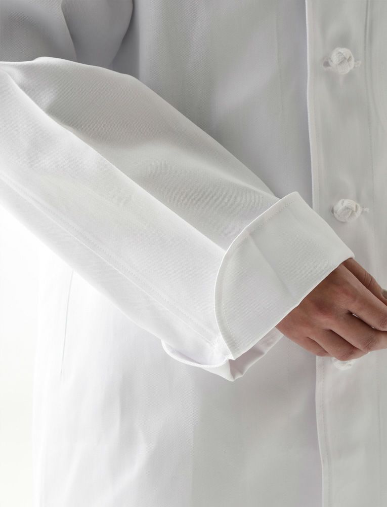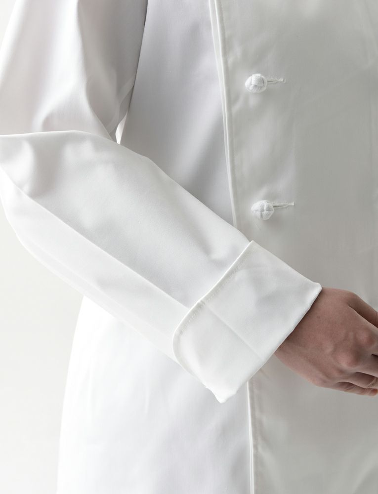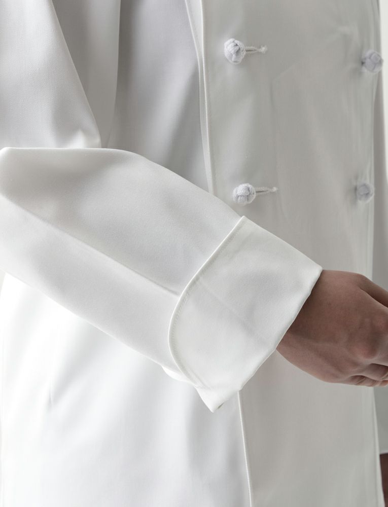 厨房・コックさんのユニフォームとして似合うコック帽やコックコート、厨房白衣、白エプロン、コックシューズといった厨房専用の制服が勢揃い。店名やロゴ・個人名の名入れ刺繍が可能。