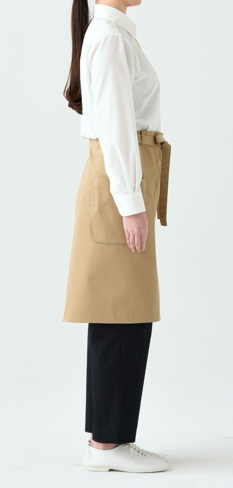 腰紐ループで着崩れしにくく、腰紐に異素材を使用することで紐がほどけにくい使用、綺麗にエプロンを着こなすためのポイントにこだわりました。