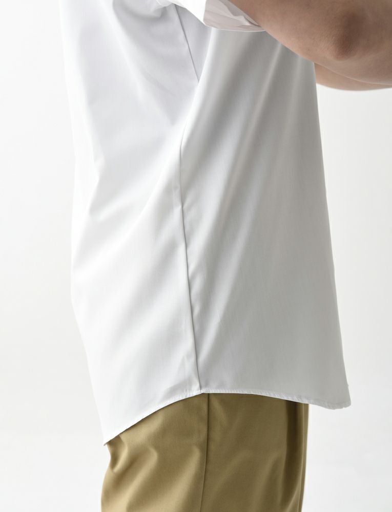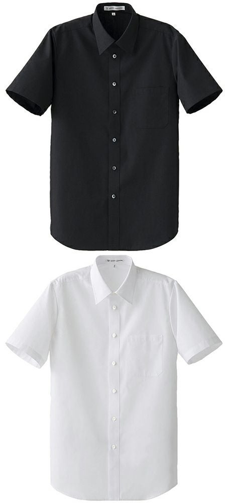 定番のシャツ生地に抗ウイルスの機能を追加したブラッシュアップ素材を使用。強度と安心感を両立しました。HACCPにも適した商品になります。カッターシャツよりで襟は硬め、アイロンでパリッするホスピタリティ高いアイテムになります。 |