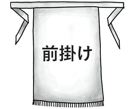 酒屋前掛けは、サイズは長いタイプと短いタイプの2種類。特に前掛け紐のバリエーションが豊富で、お好みの紐に付替えも可能です。