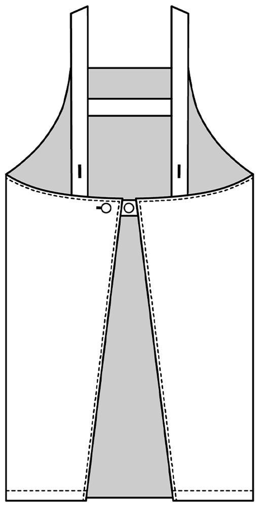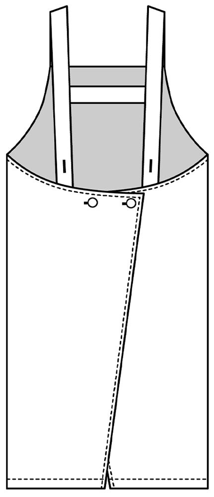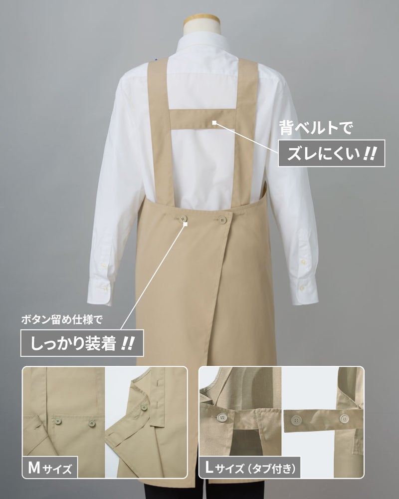 紐縛りでピッタリフィット型(背中部分の紐がX型になったエプロンが多い)、ボタン止めでゆったり動きやすい型(背中が「H」の形になっているエプロンが多い)、ファッショナブルな首掛け型。