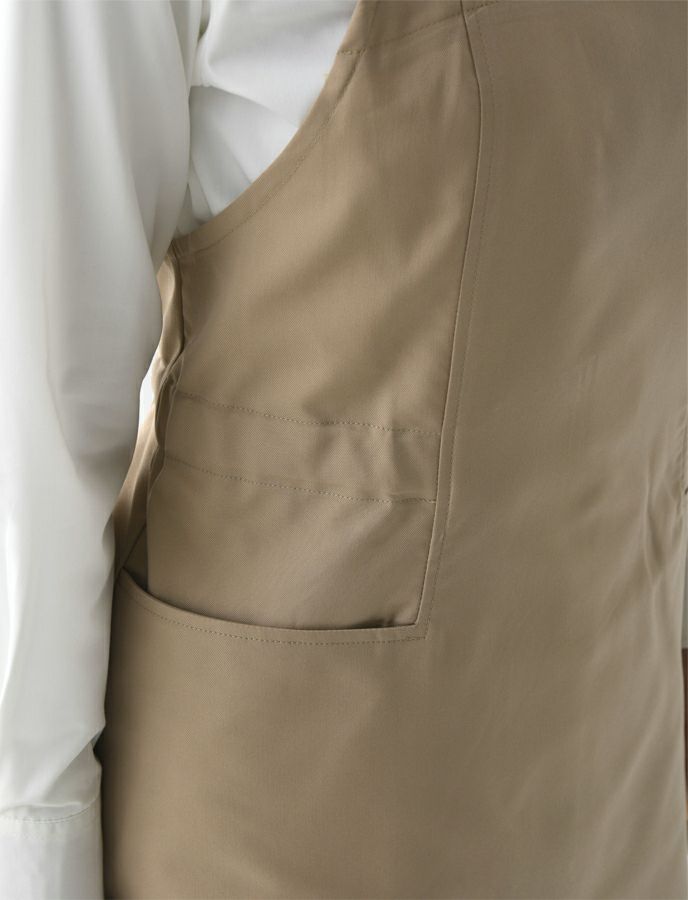 布がお尻部分まで回り込み、衣服を全体的にガードしてくれる巻きエプロンです。