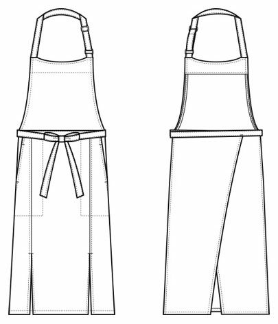 胸巾が狭く作られているのと、腰のスラッシュポケットでスタイリッシュな印象に。