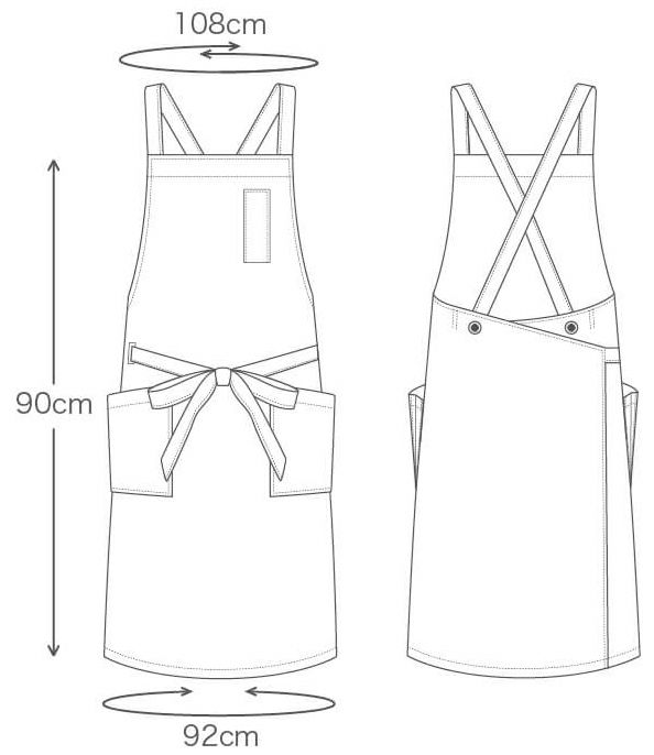 説明 内側のひも通し穴に腰ひもを通して結ぶと、後ろ姿がすっきり見えます。ポケットはマチ付きポケットが左右に各1つ、左胸にペン差しポケットが付いています。肩ひもの長さはボタンで2段階に調整可能。ソフトな風合いとストレッチ性で着心地、動きやすさともに快適です。