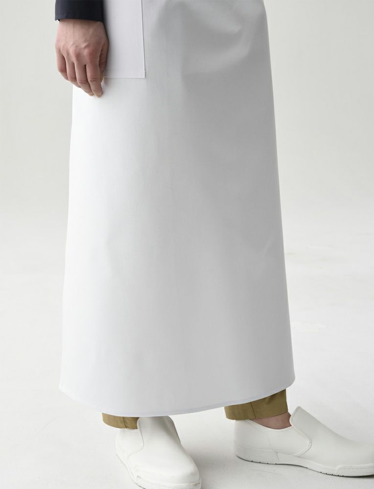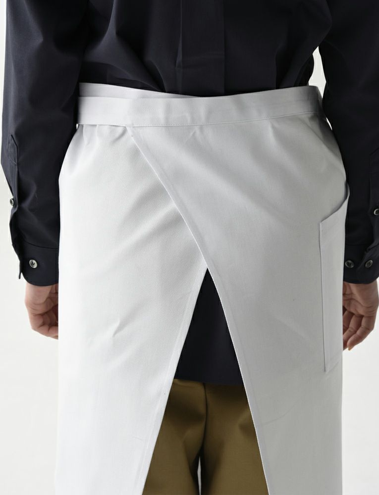 カツラギ生地、綿100%の白いソムリエエプロン。デザインは定番で、丈もしっかりと長いです。太い糸でのカツラギ生地ですので身に着けるとそれなりの重厚感があります。洗って時間が経つと身体に馴染んでいきます。