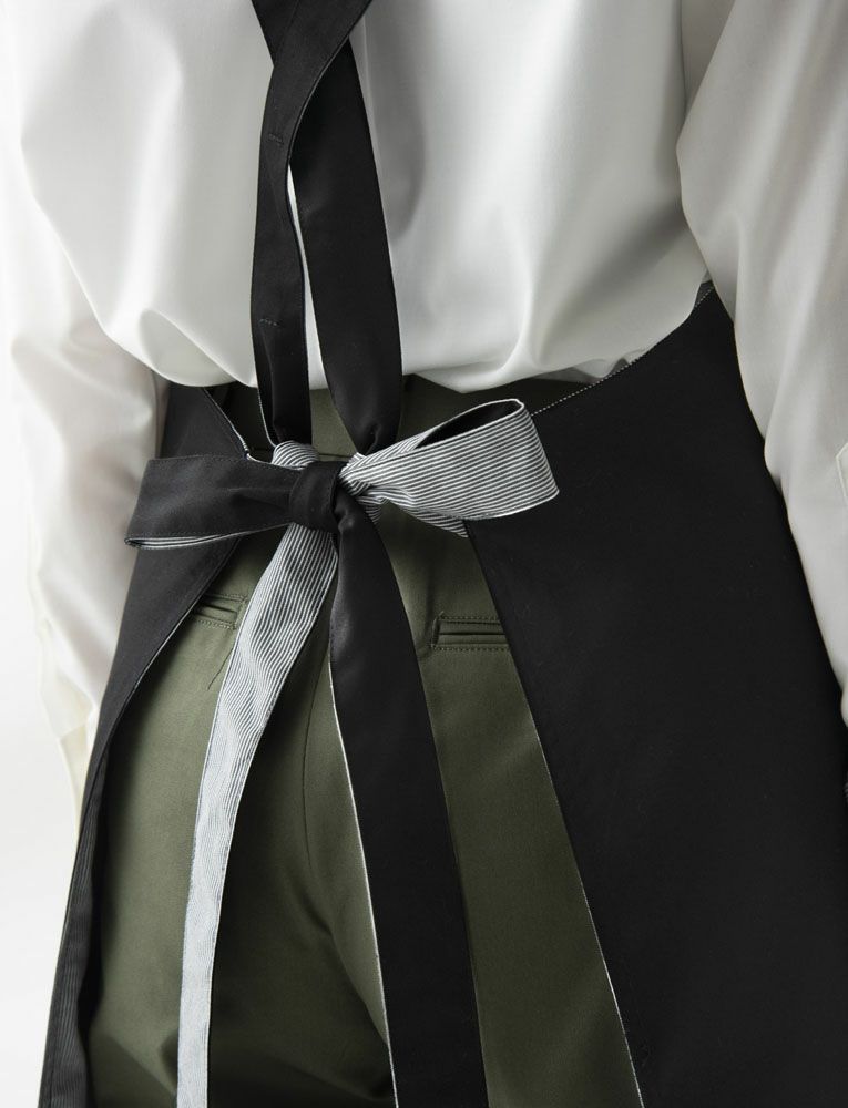 プリントや刺繍、紐の付替、ポケット加工などで完全オリジナルのエプロンも作成可能。
