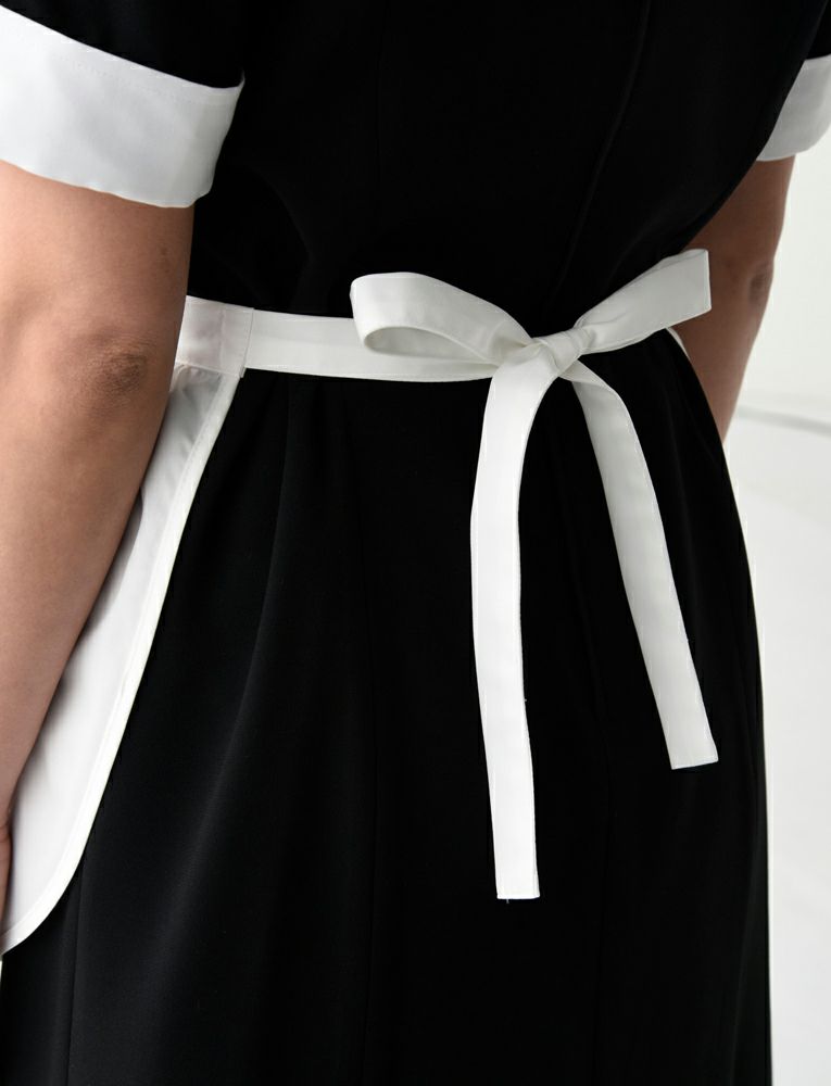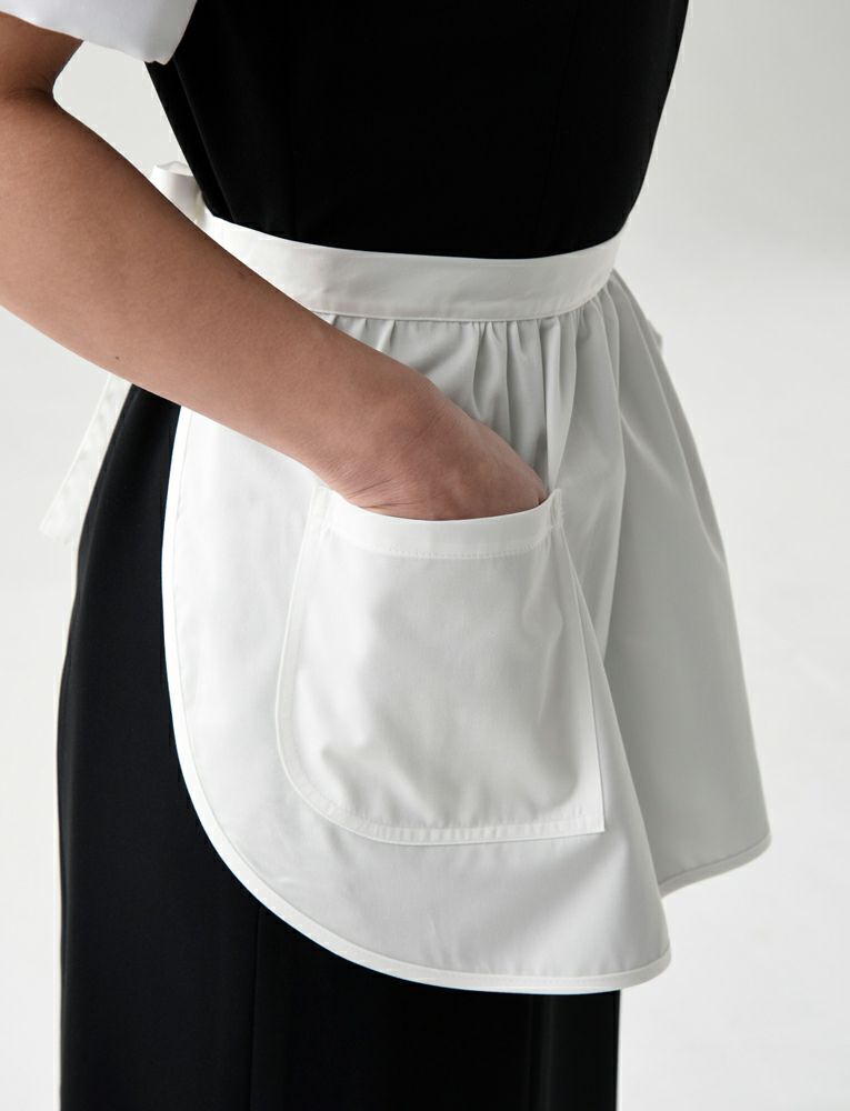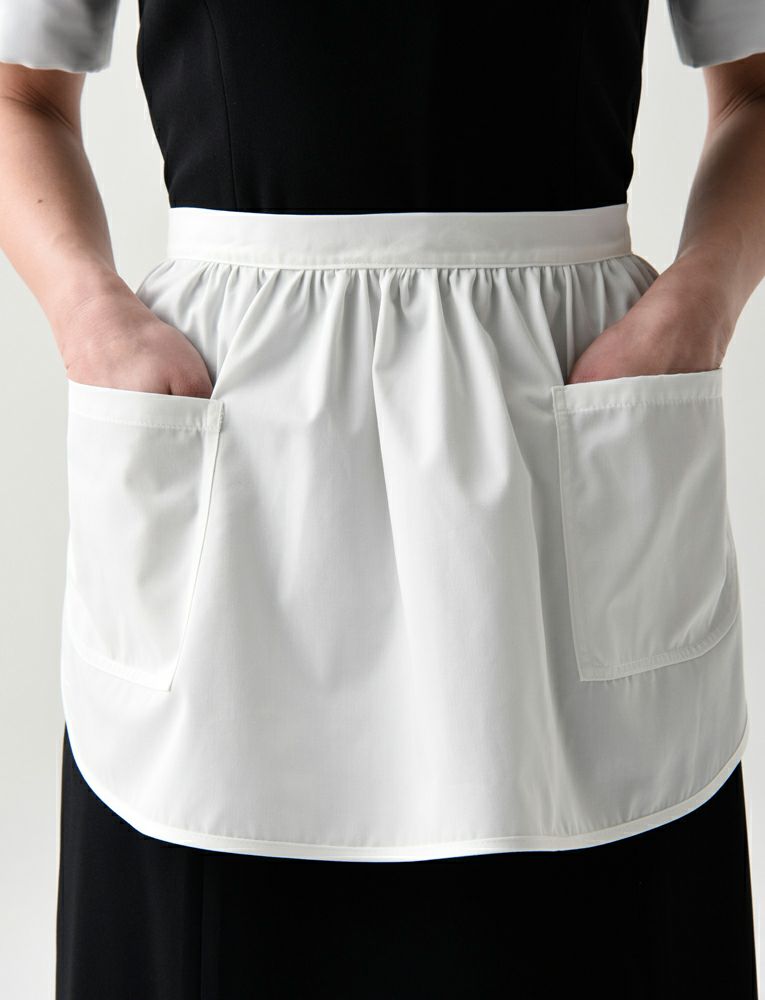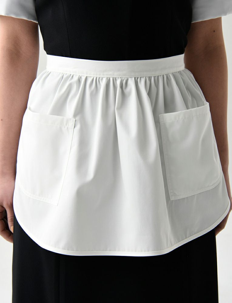 昔ながらのレディースサロンエプロンは、ホテルスタッフや、飲食店のホールエプロンとして着用されています。