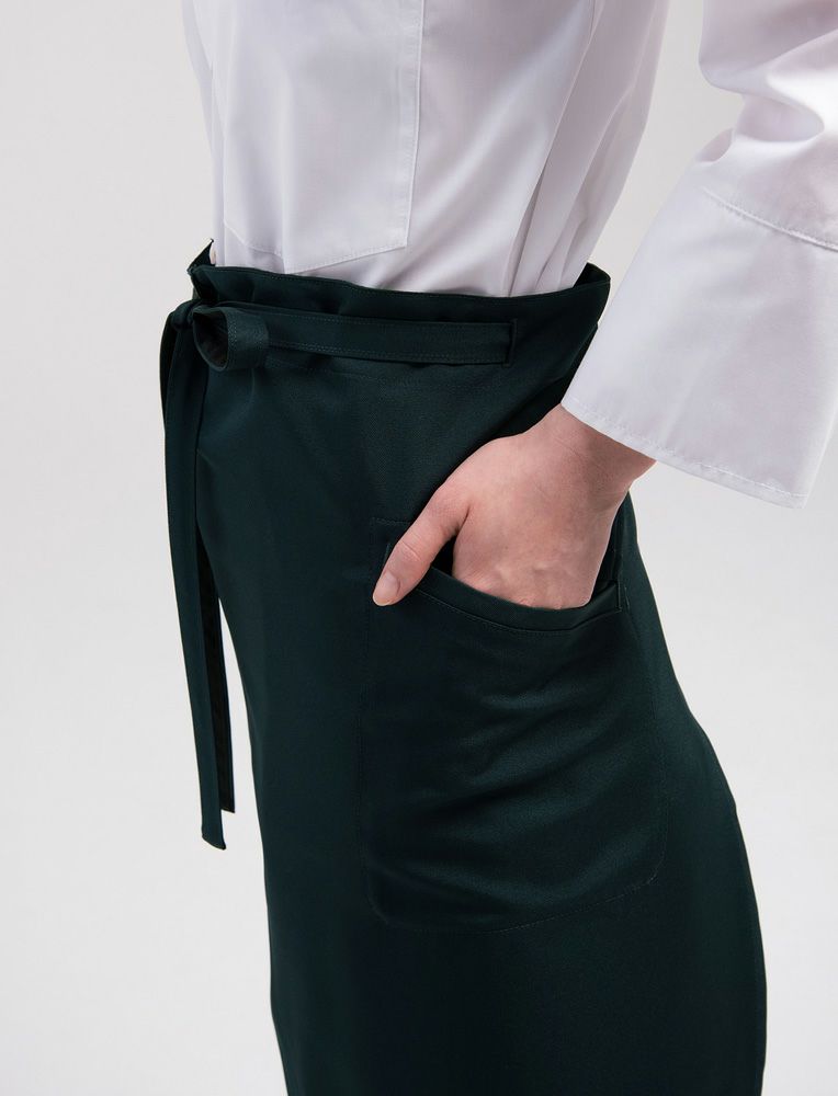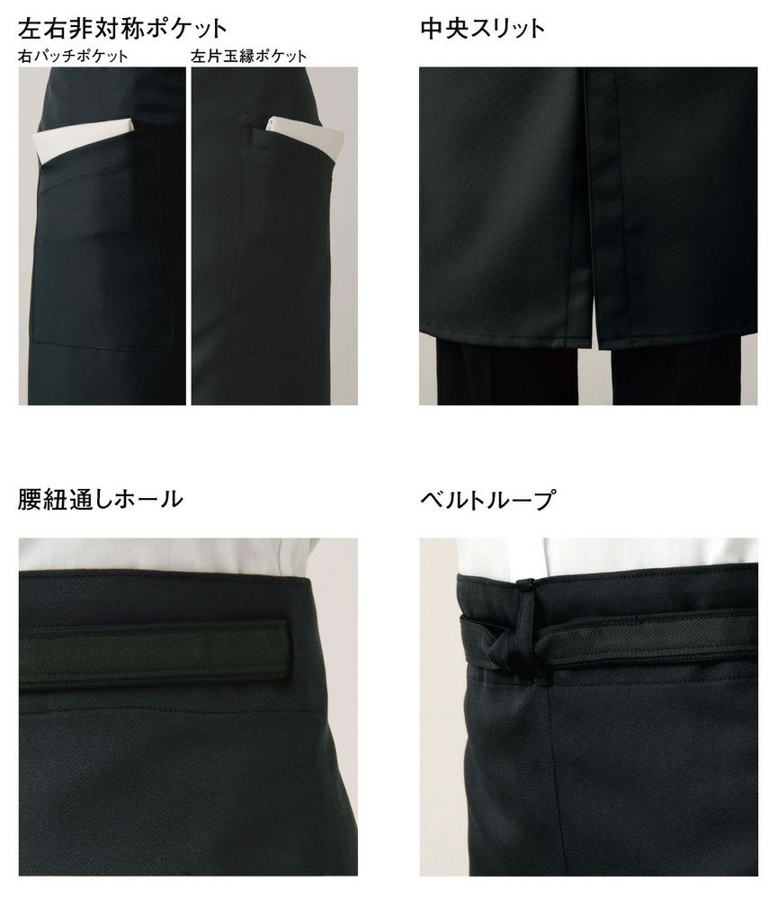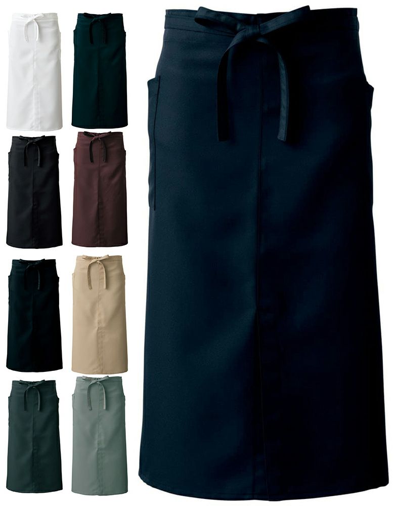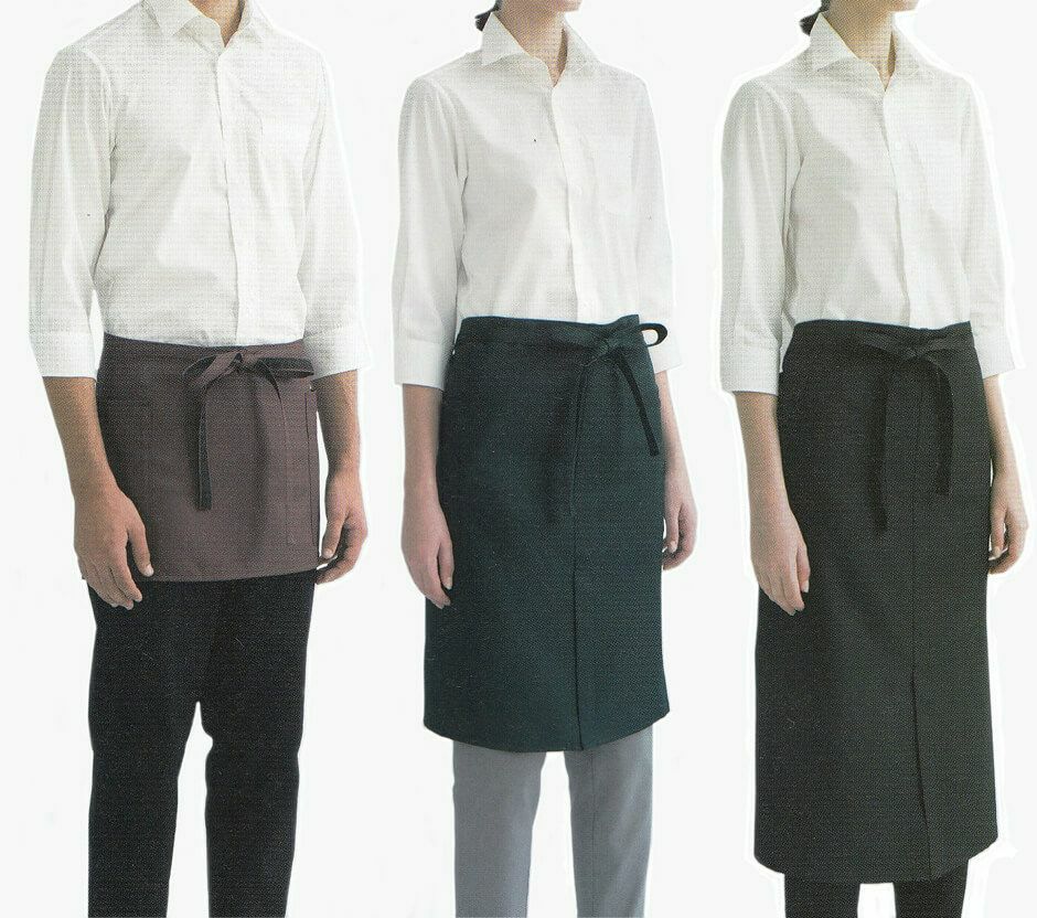 シックなスモーキーカラーのロング丈ソムリエエプロンは、制電素材とスリット入りで足さばきも軽やかで動きやすいのが特徴で人気があります。