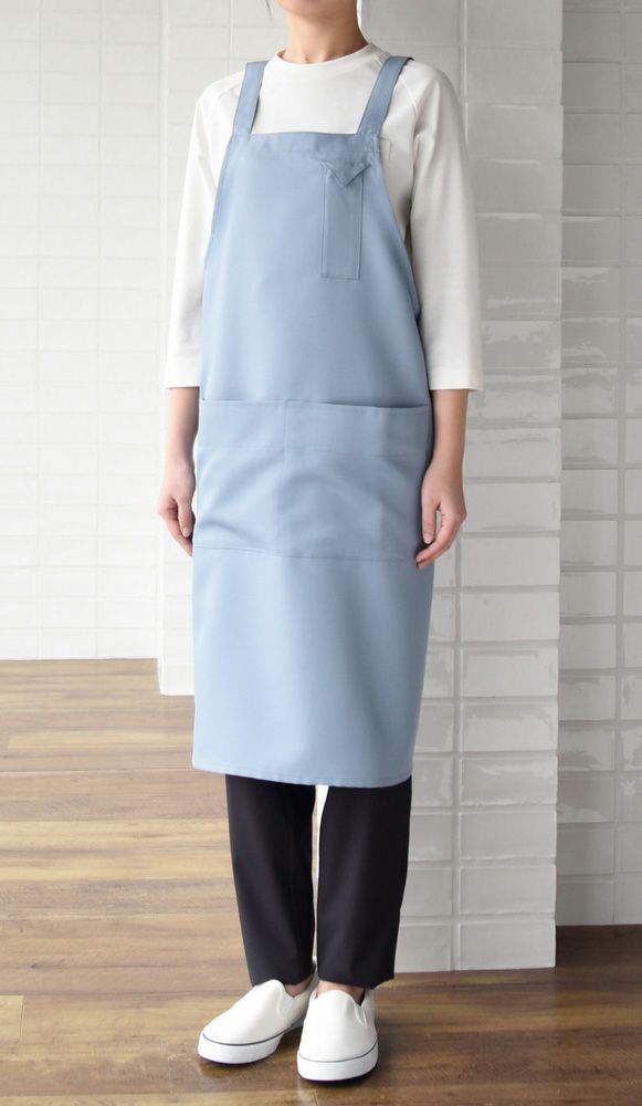 カラー展開豊富な背中H型の胸当てエプロン。