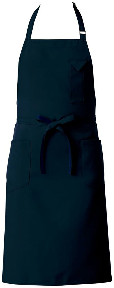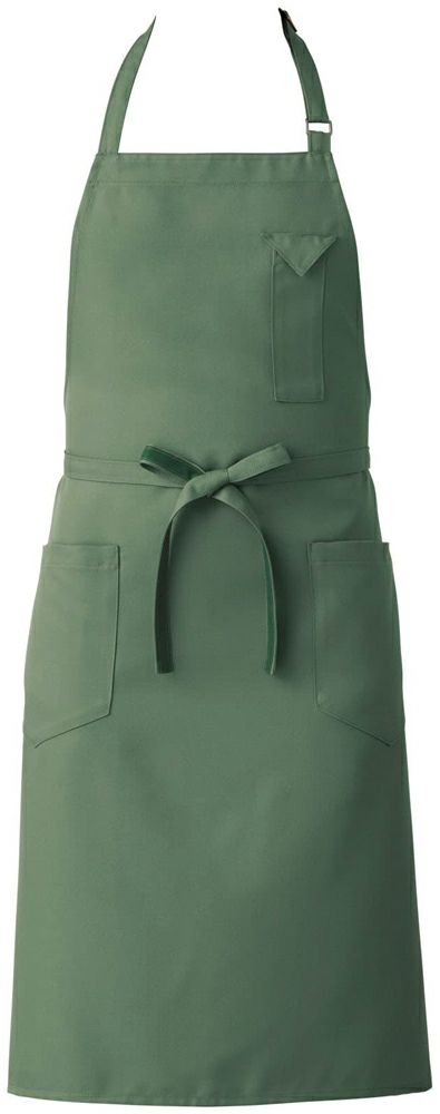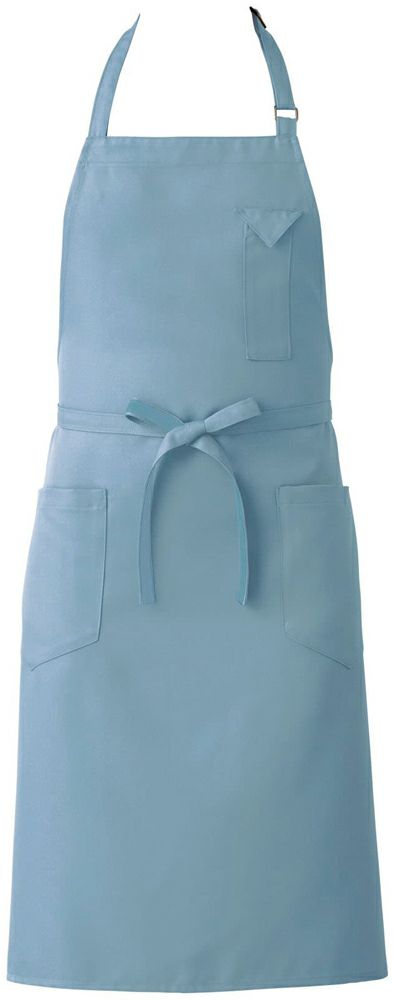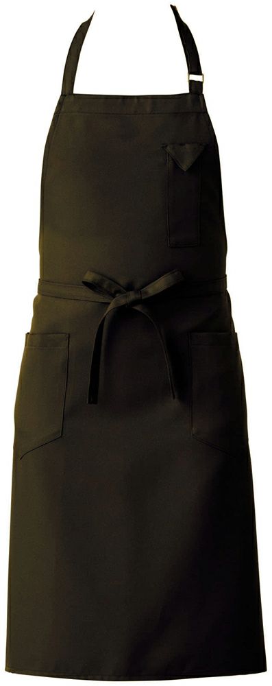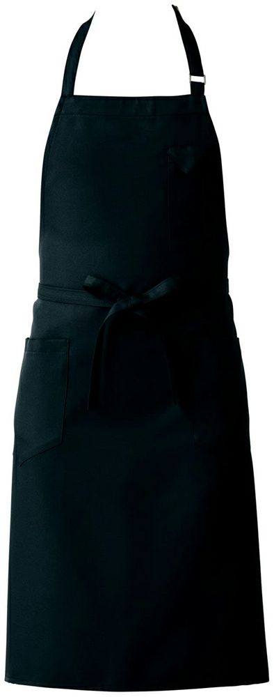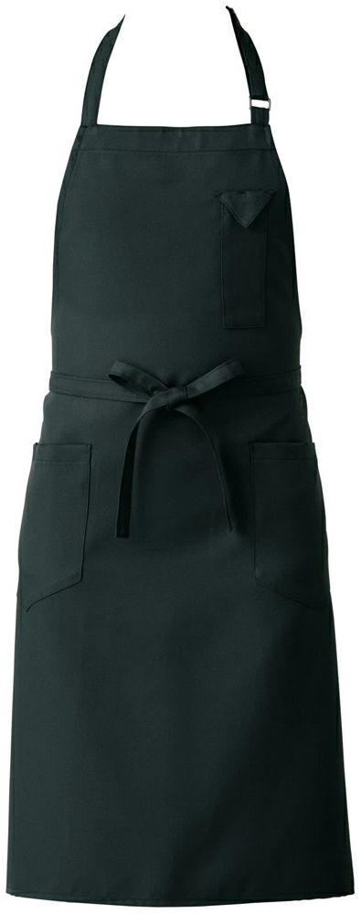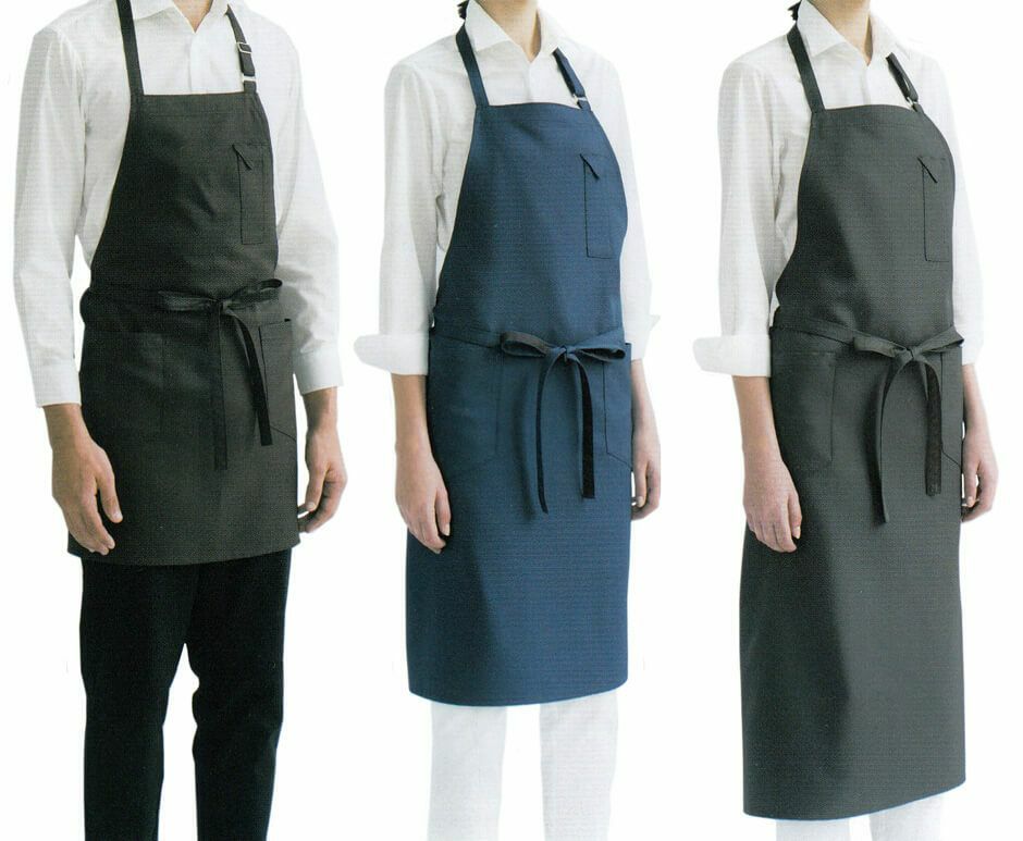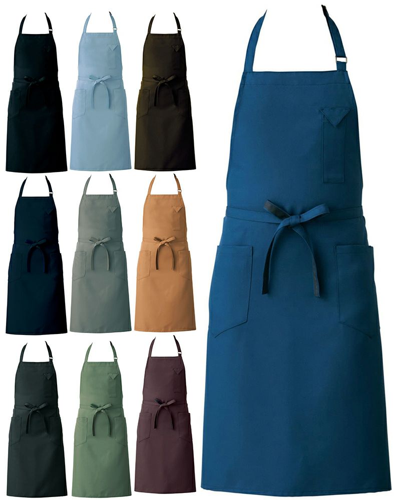 男女ともに着用しやすくスタイリッシュなミドル丈タイプの首掛け胸当てエプロンです。