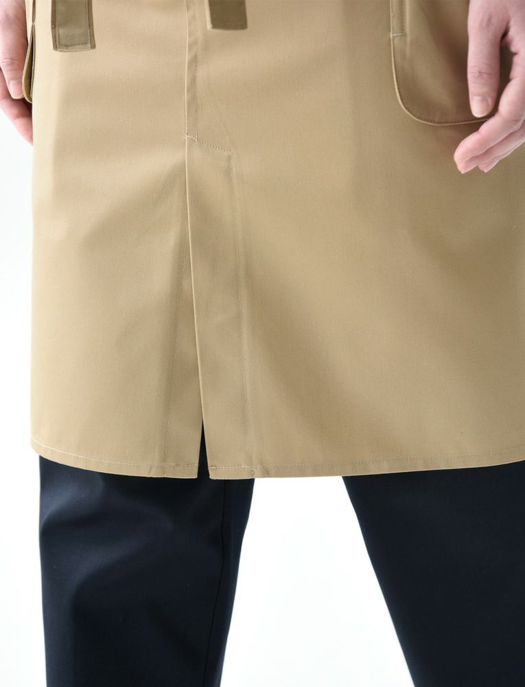 スリット入りで動きやすく、収納にも便利なマチ付きポケットが両サイドについてます。