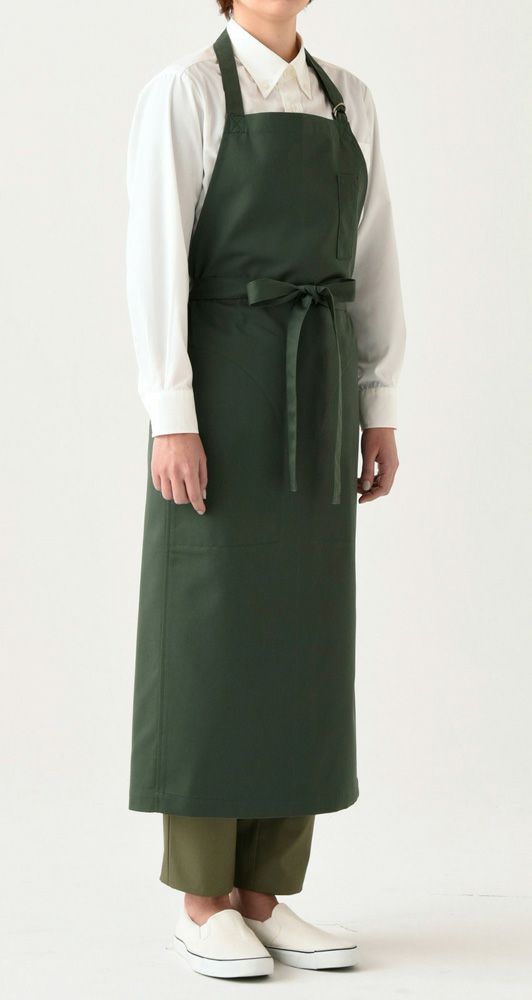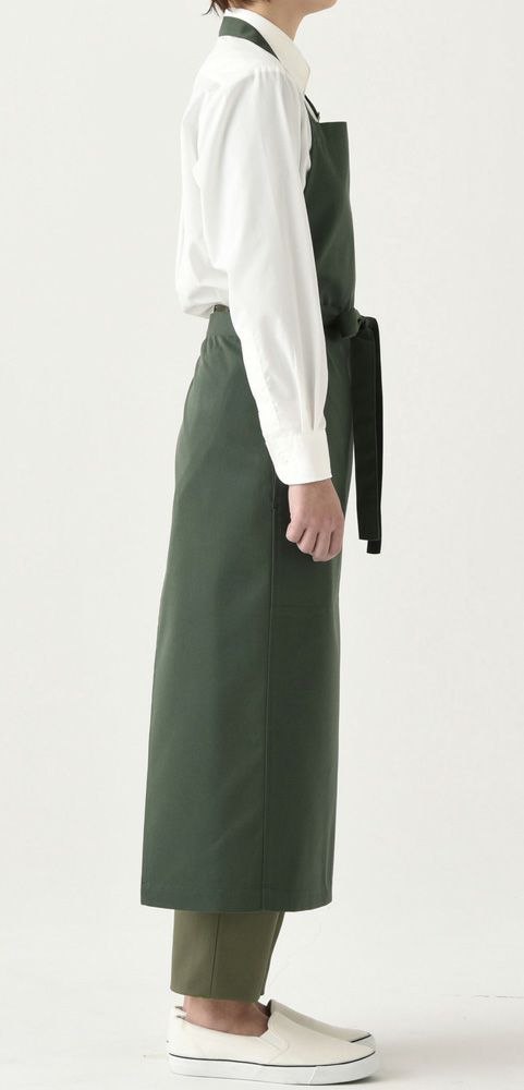 ロング丈で着用するだけでスタイリッシュな着こなしのできる首掛けエプロン。