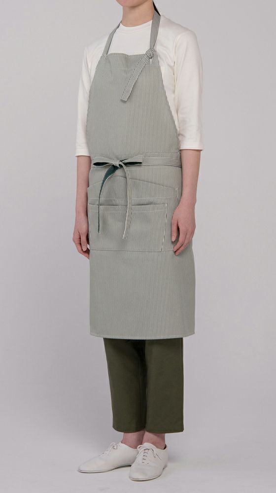 (ミドル丈58cm) 【制電素材】ストライプ柄ミドル丈エプロン [7-CT2387]