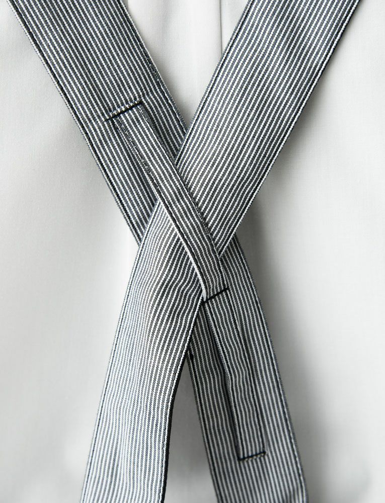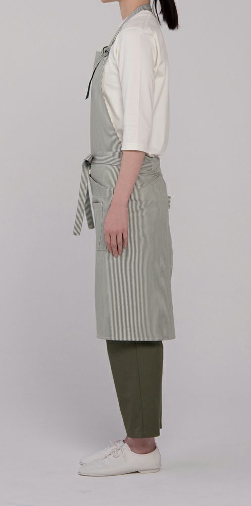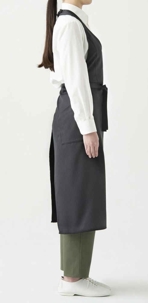 【ストライプ柄】首掛け胸当てエプロン(スリット入り・制電素材)[7-CT2388]