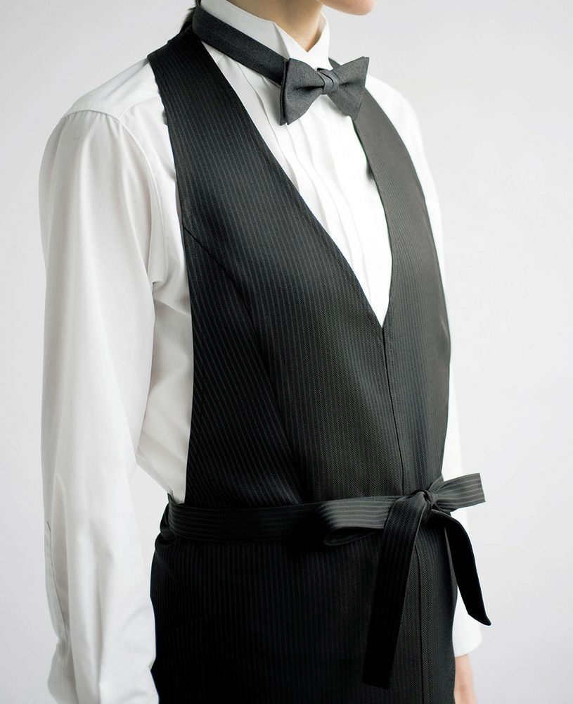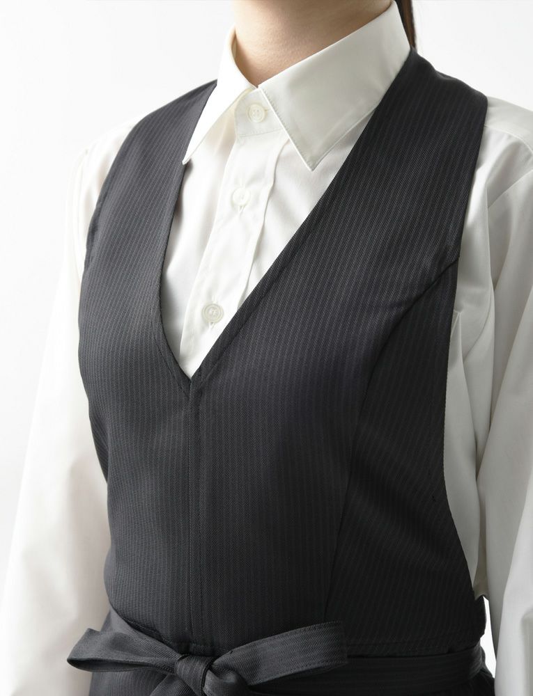 ベストと一体型になっているフォーマルエプロンは高級感と、きっちりしたサービスを受けられる安心感があります。