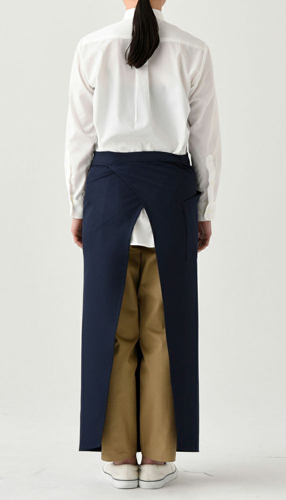 ベーシックな制電素材の腰下ロング丈エプロンは、和・洋・中、店舗を選ばず、幅広くお使いいただけます。