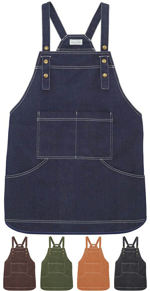 紐縛りでピッタリフィット型(背中部分の紐がX型になったエプロンが多い)、ボタン止めでゆったり動きやすい型(背中が「H」の形になっているエプロンが多い)、ファッショナブルな首掛け型。