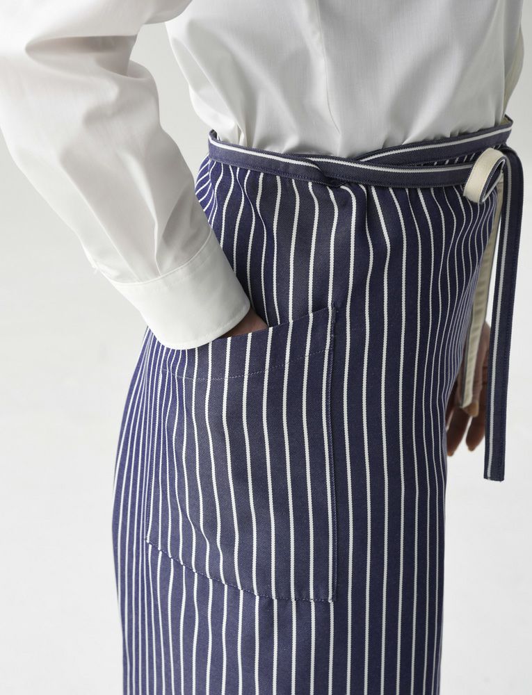ひざ上丈、丈50㎝未満のショートエプロン、ひざ丈、丈50㎝~70㎝のミドルエプロン、足首丈、丈71㎝以上のロングエプロン。