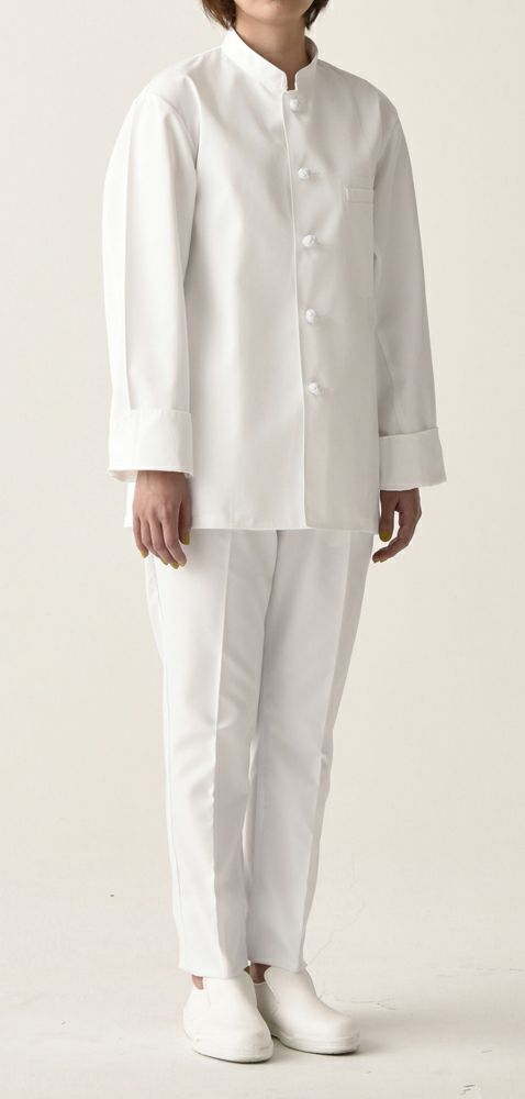 AA490-0と同一素材(ポリエステル・綿混紡糸)を使用したシングルブレストタイプのコックコート。綿100%コックコートと比べて洗濯性がよく、シワが出にくいのが特徴です。シングル合わせのコートはコーディネートによっては幅広く活用出来るアイテムです。和から中華、食品関連の物販まで色々なシーンで活用できるものになっています。 |