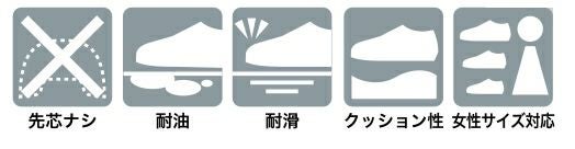 先芯ナシ・耐油・耐滑・クッション性・女性サイズ対応