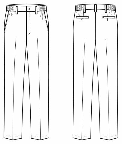 耐塩素、制電、ストレッチ、フロントボタン留め・脇ゴム入り |