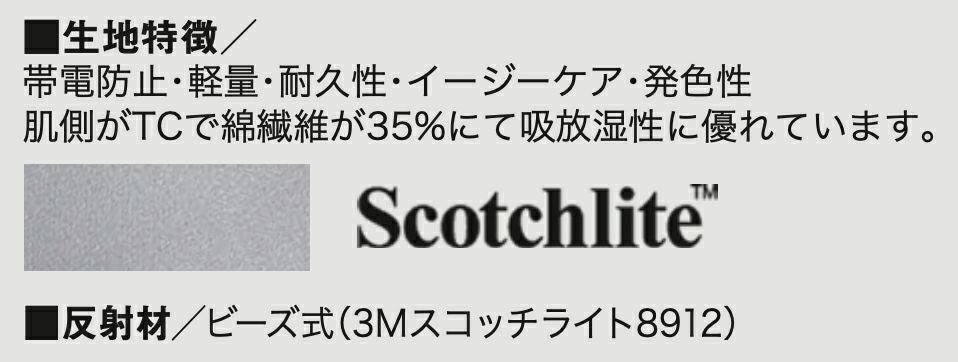 注意点 ・本製品は視覚的に認知度を高める高視認性安全服ですが、本製品を着用時必ずしも事故が起きないといった保証はありません。