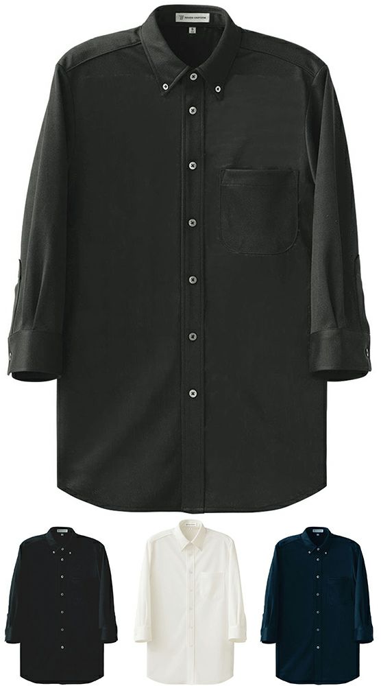 SS~5L 7分袖ボタンダウンニットシャツ<男女兼用> [7-CH4496]