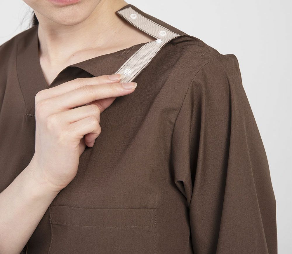 制電、抗ウイルス、袖口アンダーカバー付、肩スナップボタン留 |