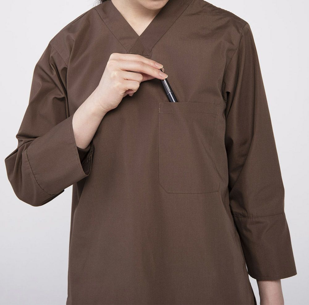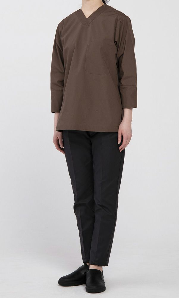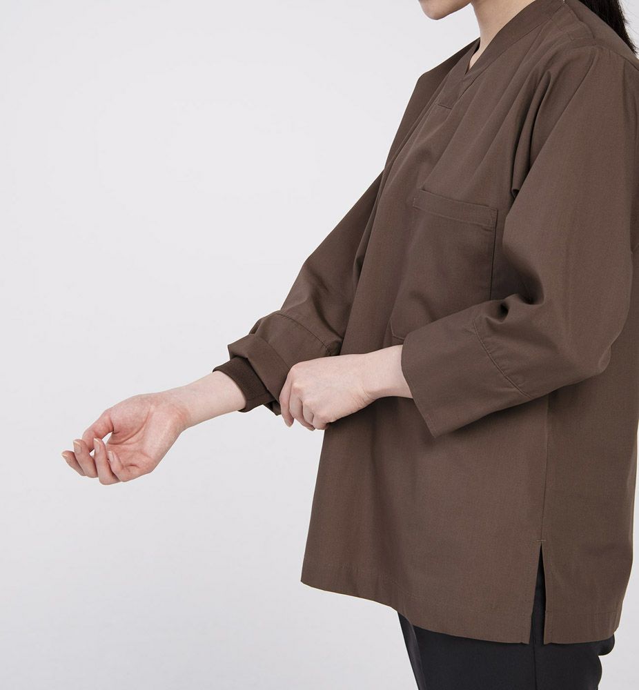 SS~3L 8分袖ノーカラーシャツ<男女兼用>[体毛落下防止・袖口二重構造] [抗ウイルス] [HACCP対応] [7-CH4470]