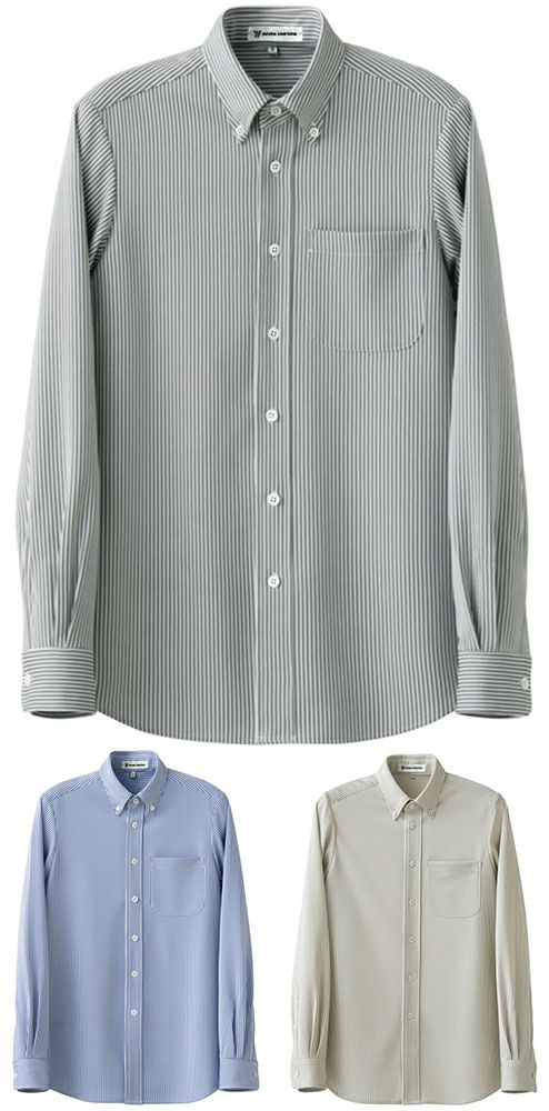 特徴 ニュースタンダードシャツとして開発したジャージ素材のB.D長袖ストライプ定番シャツです。生地は柔らかくストレッチがあり快適、整えて干せばアイロン不要です。スーツ合わせもでき、裾を出してカジュアルにも着こなせます。吸水速乾機能付き。カッティングは大は小を兼ねる従来のユニフォームシルエットから脱皮し、適度にフィットするシルエットになっています。色はホテル・レストランの色々なコンセプトに合うよう3色を展開しています。