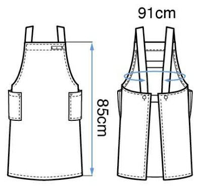特徴 肩ヒモが落ちにくいH型の胸当てエプロンです。