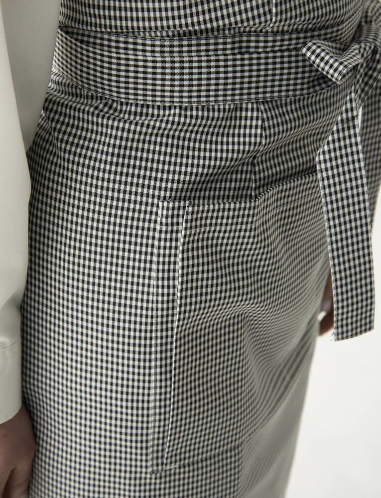 上質でエレガントなテーラードカラーに、ギンガムチェック柄で明るいポップな印象のエプロンです。