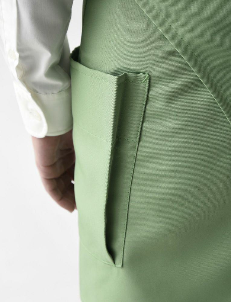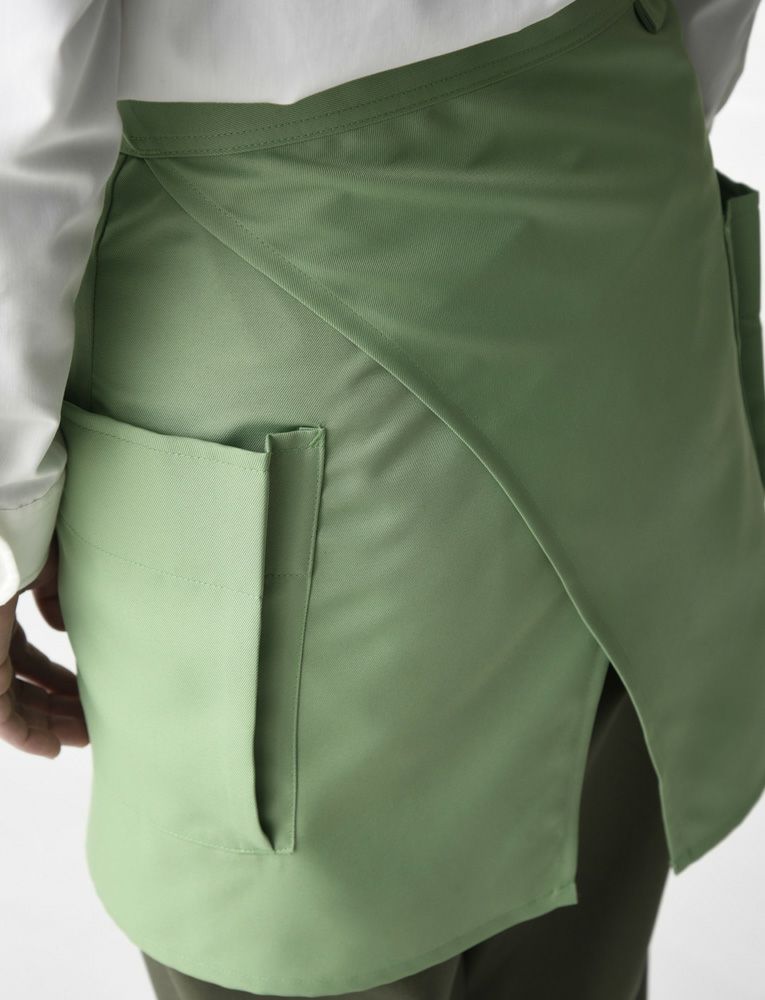 カラーバリエーション豊富な制電素材のショート丈エプロンです。