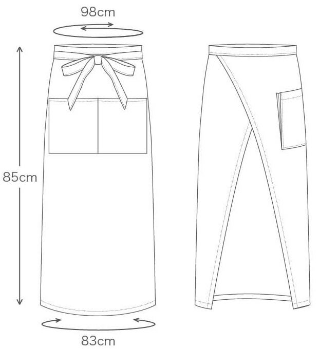説明 丈夫でシワになりにくい、収納性にこだわったロングソムリエ。ポケットは中央2分割式に加え、右後ろにマチ付きポケットが付いています。しつかりとした質感で、動きやすさ、使いやすさともに快適です。