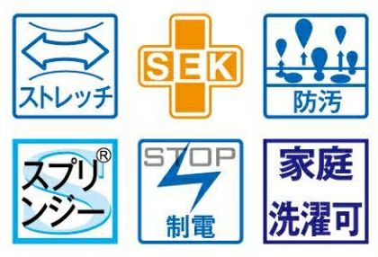 6つの機能:制菌加工・防汚加工・透け防止・帯電防止・吸汗速乾・ストレッチ