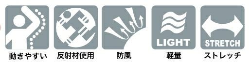 動きやすい・反射材使用・防風・軽量・ストレッチ
