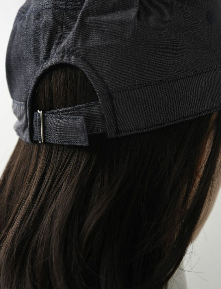 特徴 カジュアルでアクティブなシーンで活用できるアイテムです。サービスとして大切な目が隠れないようにツバが短めなところが特徴のワークキャップです。素材はデニム、ポリエステルと綿の混ざった生地で作成しました。毎日使用、洗濯した際の色退色、生地の劣化などが綿100%のものより強くなり、きれいな状態のまま長く使用することが出来ます。頭周り調整バックル付き。