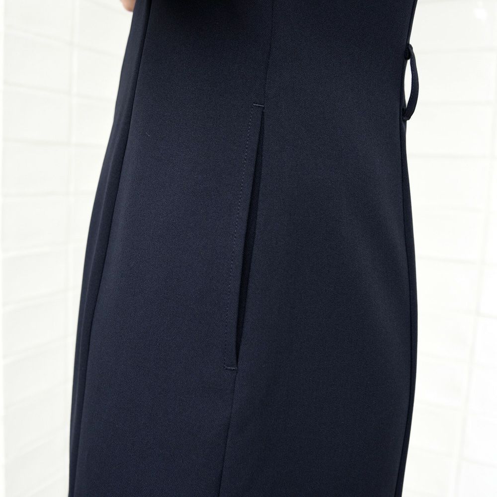 | 特徴 | ハウスキーパー用として開発しました。生地はポリエステル100%ながらスーツ生地の様な高級感があります。ストレッチあり、柔らかさも兼ね備えていますので着心地はとてもよいものになっています。背中のタック奥にはメッシュ生地を配しベンチレーション機能を果たし、涼しく働く事が出来ます。両脇に縫い目利用のポケットあり、前はファスナー開き、着脱は楽です。同じく前にはボックスプリーツがありますので足捌きもよいものになっております。着丈は長め、個人差はありますが膝下の設定で作成しております。襟と袖口に同色系のテープがユニフォームらしい雰囲気を醸し出します。 |